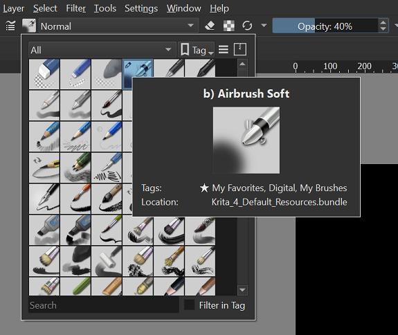 Now, select the brush - AirBrush Soft, and set opacity = 40% as shown in diagram above. Set your brush colour to White and draw your texture. Start by creating a simple sketch of the texture you want.