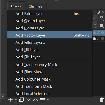 - Under the layer settings, create a new vector layer